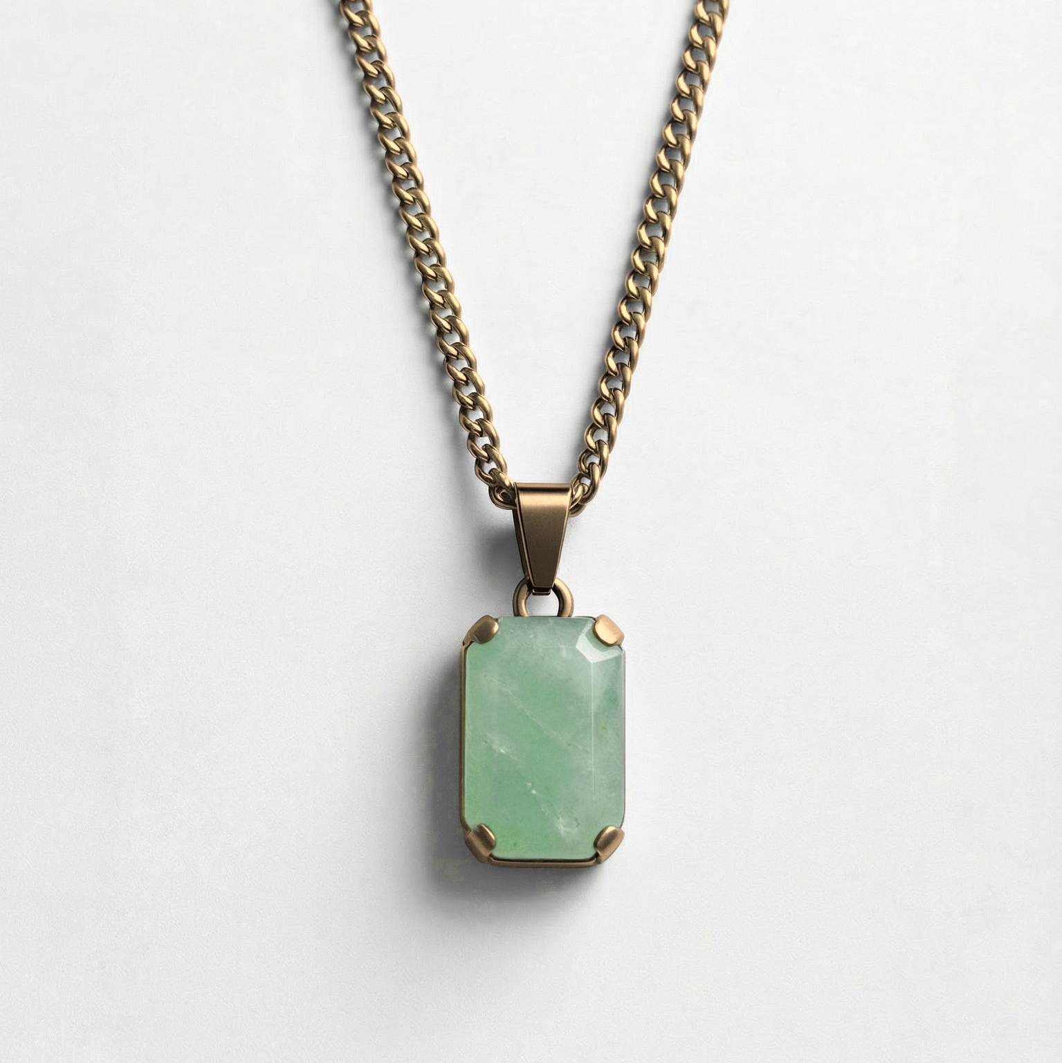 Introducing the Nova Green Aventurine. A bold fusion of elegance and edge. Featuring a meticulously cut stone set in a sleek frame, this pendant radiates quiet power and refined minimalism. The sharp facets catch light subtly, creating a dynamic interplay of depth and polish.