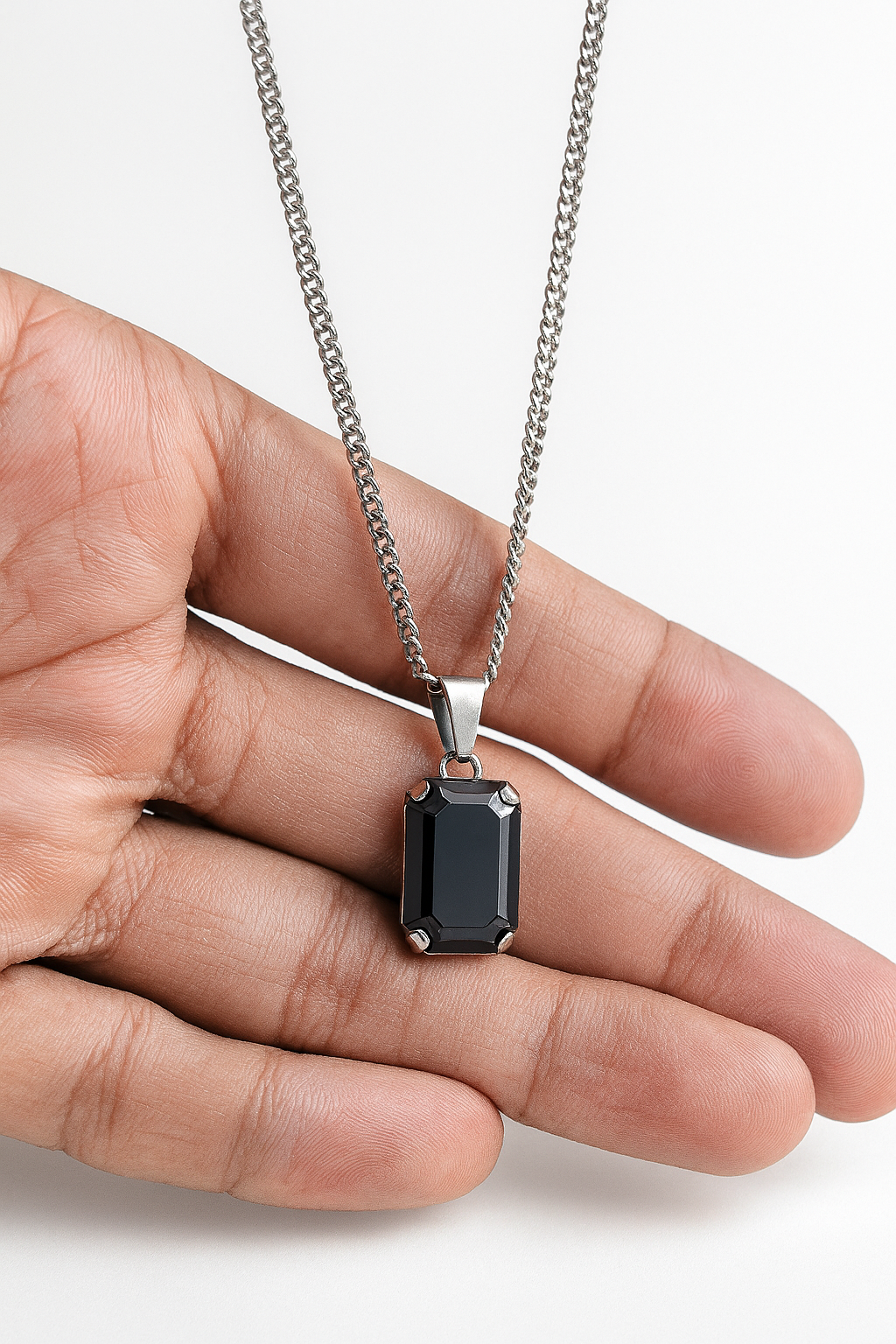 Introducing the Nova Onyx Pendant. A bold fusion of elegance and edge. Featuring a meticulously cut jet-black stone set in a sleek frame, this pendant radiates quiet power and refined minimalism. The sharp facets catch light subtly, creating a dynamic interplay of depth and polish.